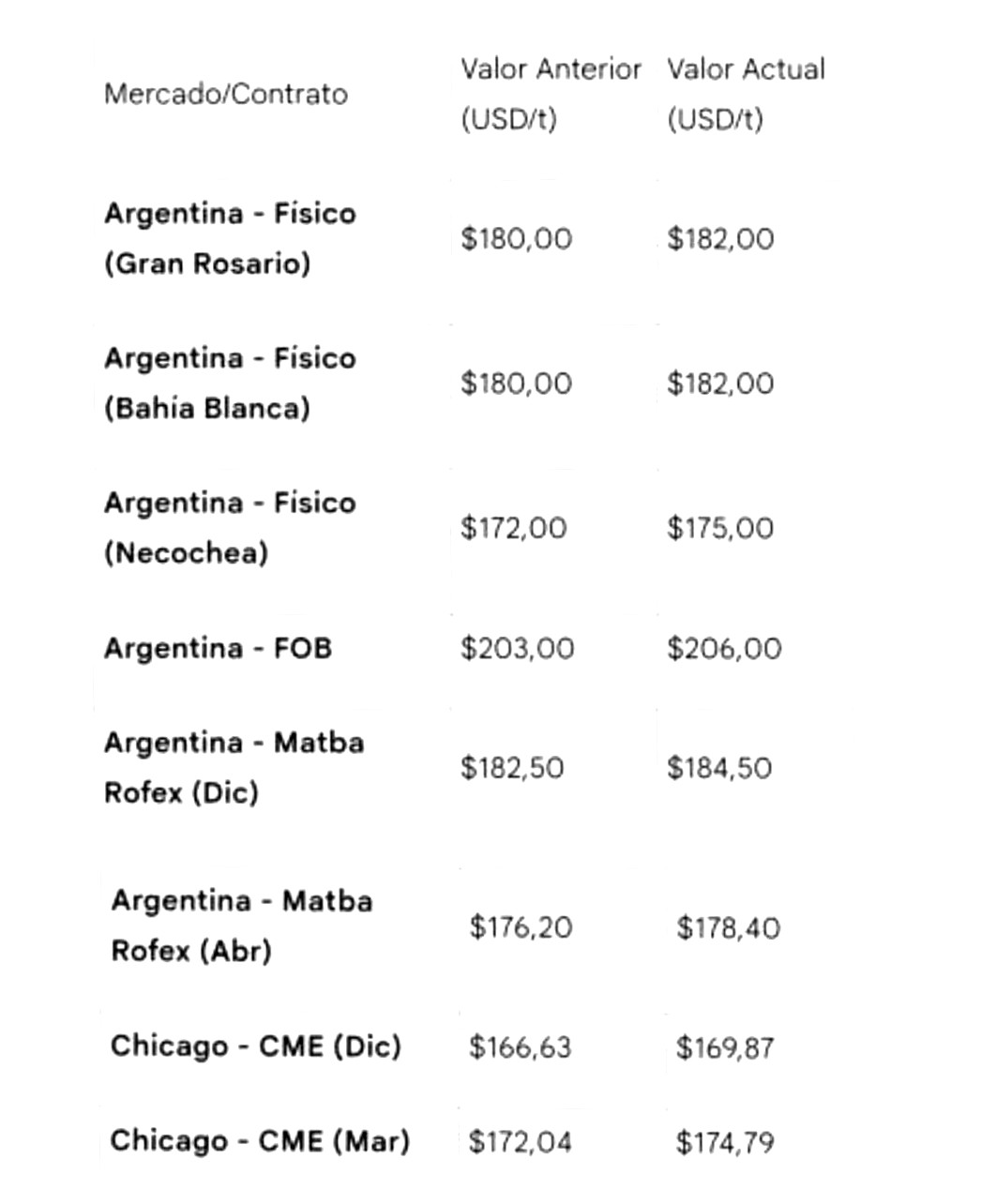| Trigo Pienso | 193,00 | 194,00 | ▲ |