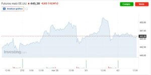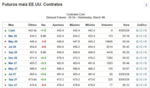 En los futuros del maíz en París, para los contratos de junio de 2026, el precio semanal se fijó en 201,5 euros/Tm el 4 de marzo, 9,75 euros más que hace una semana.