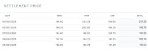Para los contratos de marzo de 2027, el precio también subió de manera importante 5,75 euros, hasta 203 euros/Tm.