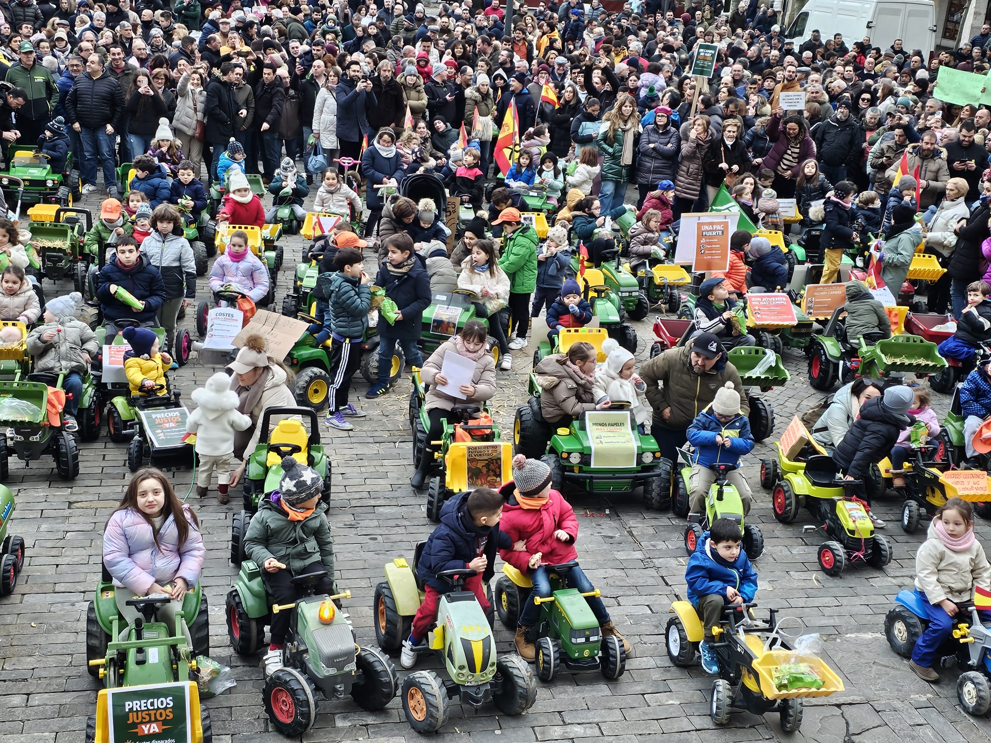 La original tractorada infantil de Palencia congregó a más de 1.500 personas en la plaza Mayor de la capital.Con el lema ‘En defensa del consumidor y del sector agrario’ los productores palentinos mostraron su rechazo al Tratado UE-MERCOSUR, a la reducción del presupuesto de la PAC, a la excesiva burocracia de las Administraciones y por la falta de rentabilidad de las explotaciones.También se mostró una pancarta con el lema ‘Por vuestro futuro y el nuestro’, con la que cerca de 250 hijos de los agricultores y ganaderos de las OPAs palentinas, montados en sus tractores de juguete, encabezaron la original manifestación conjunta.Los niños, con pancartas que decían ‘Sin campo no hay futuro’, ‘No a la competencia desleal’, ‘Una PAC fuerte’, ‘Precios justos ¡ya!’, ‘De mayor quiero ser agricultor, ¿podré?’ o ‘Sembremos esperanza para cosechar un futuro’, protestaban por una realidad del sector que redunda en un menor atractivo para garantizar el necesario relevo generacional.