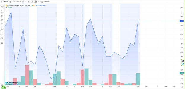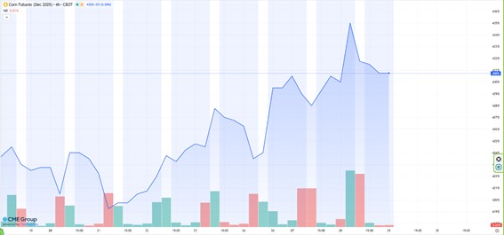 Evolución del precio del maíz en Chicago, previo al informe USDA del viernes 14N.