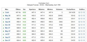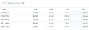 Para los contratos de junio de 2027, el precio también bajó 0,5 euros, hasta 208,75 euros/Tm.