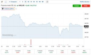 En los futuros del maíz en París, para los contratos de junio de 2026, el precio semanal se fijó en 204,75 euros/Tm el 15 de abril, 0,5 euros menos que el 8 de abril.